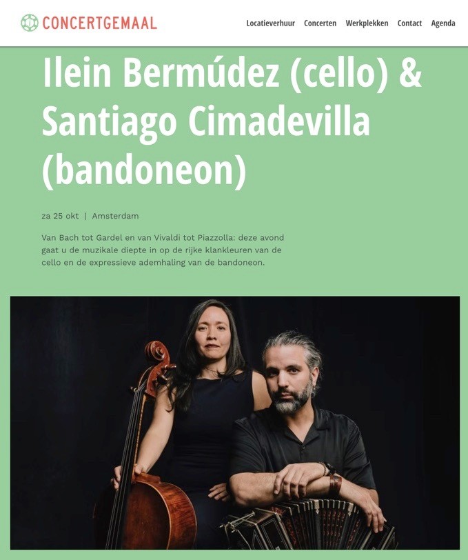 ![]() | Cello and bandoneon duo 13/09/2025 Bonn, DE https://musikstudio-paque.de/en/bermudez-cimadevilla-2025-en/ |